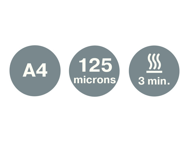 - Takes approximately 60 seconds to laminate one 80 micron A4 sheet