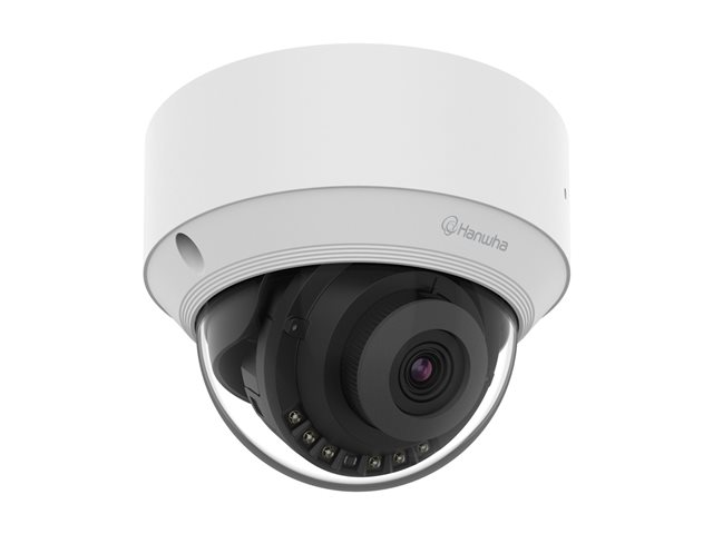 -  Informasjon The Hanwha Vision QND-C8013R is designed for robust surveillance in various environments, featuring a minimum operating temperature of -10°C and a maximum of 45°C, making it suitable for diverse conditions. This network surveillance camera utilizes a 5,000,000 pixel CMOS optical sensor for clear image capture up to a maximum resolution of 2592 x 1944. With a fixed lens system that has a 100-degree horizontal field of view, it provides excellent coverage in monitoring areas. The camera is equipped with intelligent features, including AI Analytics and various detection capabilities such as vehicle color recognition and people counting, ensuring comprehensive surveillance and security management. With advanced image processing technologies like Wide Dynamic Range (WDR) and Samsung Super Noise Reduction (SSNR) V, the camera excels in delivering high-quality visuals even in challenging lighting conditions. The incorporation of infrared LEDs allows for enhanced night vision capabilities, up to 25 meters, ensuring visibility around the clock. Additionally, connectivity options such as PoE Class 3 facilitate easy installation and reduced cable clutter, while compliance with multiple standards ensures reliable performance and interoperability with various security systems.