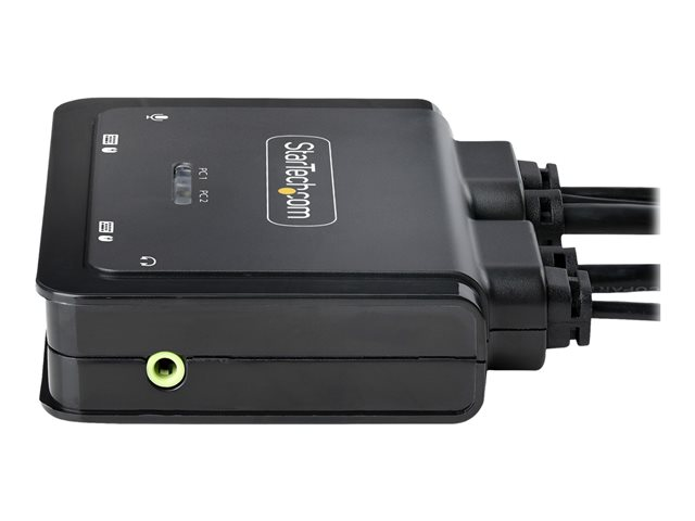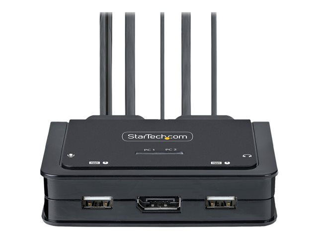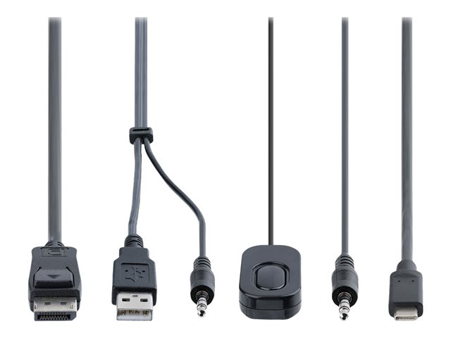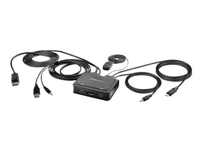 - Ready-to-use - small form factor, integrated cables, and no external power adapter enable rapid deployment, bus-powered KVM switch features built-in 6 ft/1.8 m USB-A, DisplayPort, and Audio host cables for PC1, and 4f t/1.2 m USB-C and Audio host cables for PC2