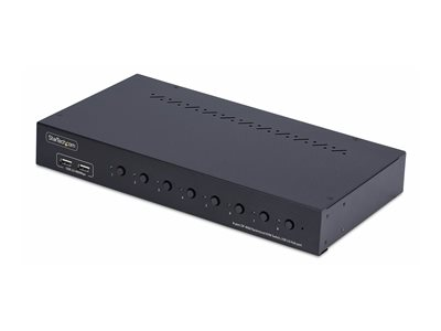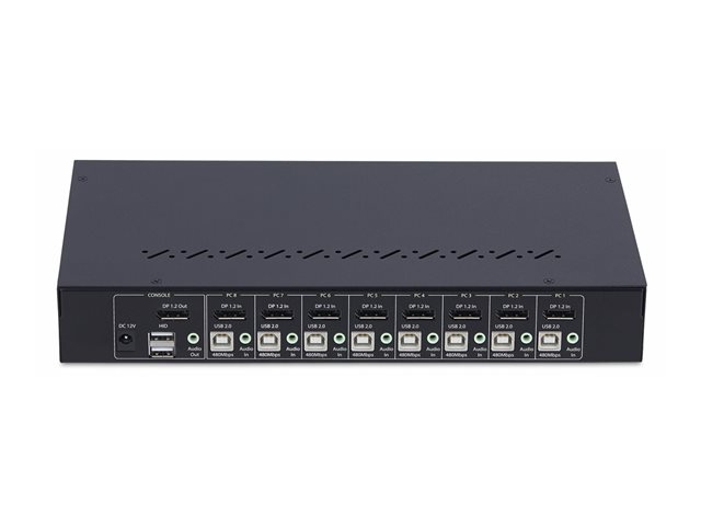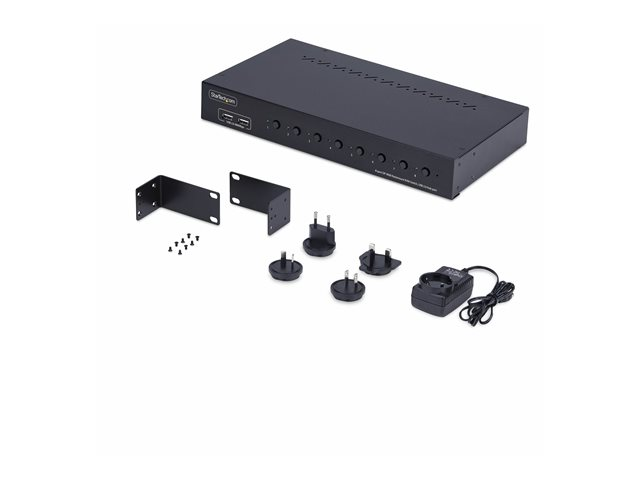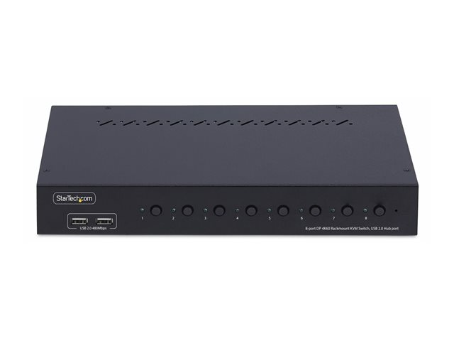 - Informasjon The 8-Port DisplayPort KVM Switch with 1U Rack Mount Kit from StarTech.com is designed to simplify the management of multiple computers and enhance productivity in any workspace. Supporting video resolutions up to 3840 x 2160 at a 60 Hz refresh rate, it delivers high-quality visuals for various applications. Local users can switch between computers using pushbutton or hotkey commands, ensuring a seamless transition without the hassle of tangled cables. Additionally, with audio support for 5.1 channel audio, it caters to multimedia needs, making it suitable for both office and entertainment setups.