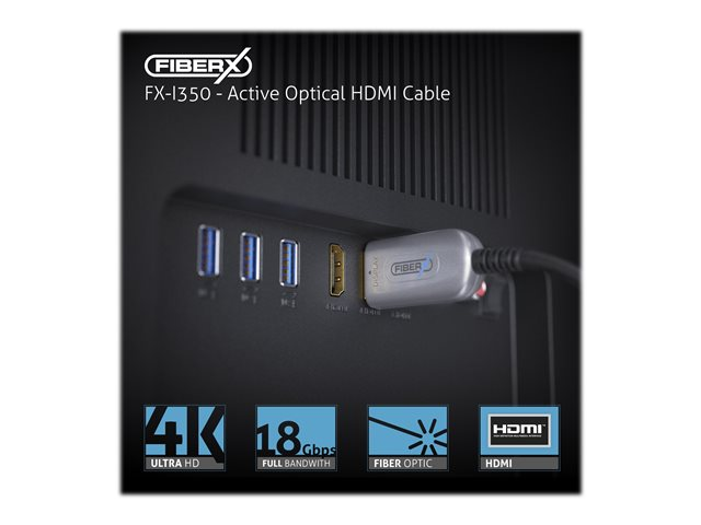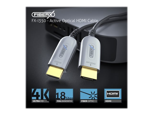- Informasjon Opplev lyd- og bildeytelse av høy kvalitet med PureLink FiberX Series FX-I350 hybrid kobber/fiberoptisk HDMI-kabel. Denne kabelen er designet for sømløs tilkobling og har gullbelagte kontakter for optimal signaloverføring og holdbarhet. Den avanserte teknologien støtter 4K-oppløsning, noe som sikrer at alle detaljer blir levert med presisjon. Med HDCP-kompatibilitet og støtte for x.v.Color kan brukerne nyte en HD-opplevelse med stor fargedybde og klarhet. Denne HDMI-kabelen har støtte for Dolby TrueHD og DTS-HD Master Audio, noe som gjør den til et ideelt valg for dem som setter pris på overlegen lydkvalitet. 16/24 bit Deep Color sørger for levende bilder, mens EMI- og FCC-kompatible standarder gir trygghet når det gjelder interferens og sikkerhet. Med sin PVC-kappe og robuste konstruksjon kobler FX-I350 til enhetene dine med pålitelighet og stil.