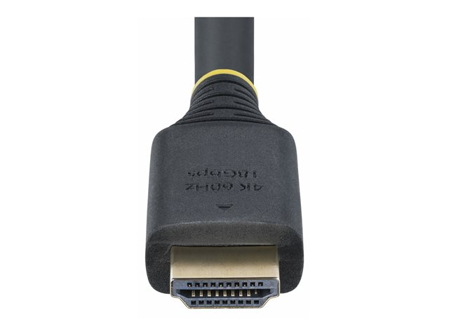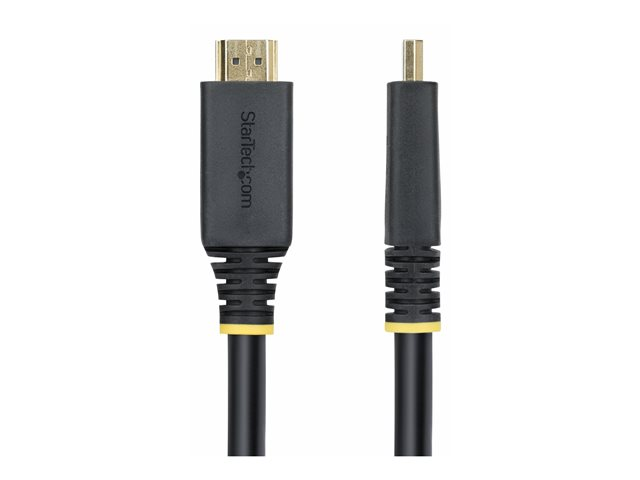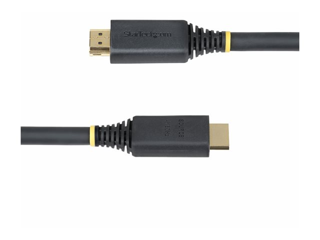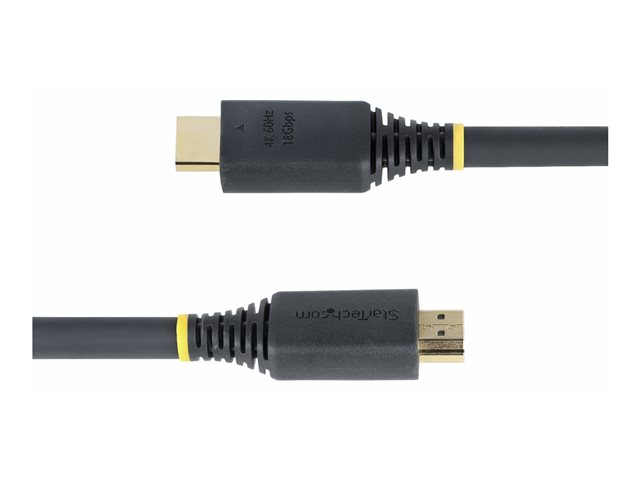 - Informasjon The 10 m Active High Speed HDMI Cable from StarTech.com is designed for performance-oriented connectivity, delivering visuals and audio. This cable supports resolutions up to 4K (2160p) at 60 Hz, ensuring crisp image quality suitable for high-definition displays. With 12-bit Deep Color, 32 audio channels, and support for a 21:9 cinema aspect ratio, it provides an enriched viewing experience. The advanced shielding material, coupled with EMI protection, provides stable signal transmission without interference, making it suitable for demanding environments.