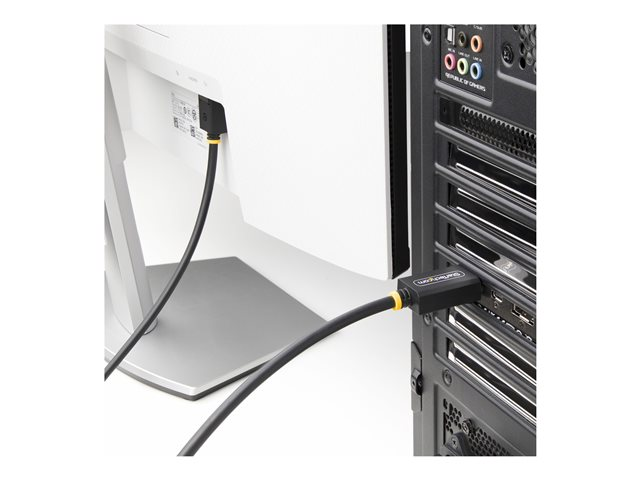 Constructed for durability, it features a 10,000 insertions lifespan, 600 bend lifespan, and strain relief, ensuring it withstands the rigors of regular use. The inclusion of EMI protection and halogen-free materials not only ensures the safety of your setup but also contributes to a more sustainable environment. With support for FreeSync and G-Sync, enjoy seamless, tear-free visuals that transform your viewing experience. Choose the StarTech.com DisplayPort cable for a reliable, high-quality connection that brings your content to life.