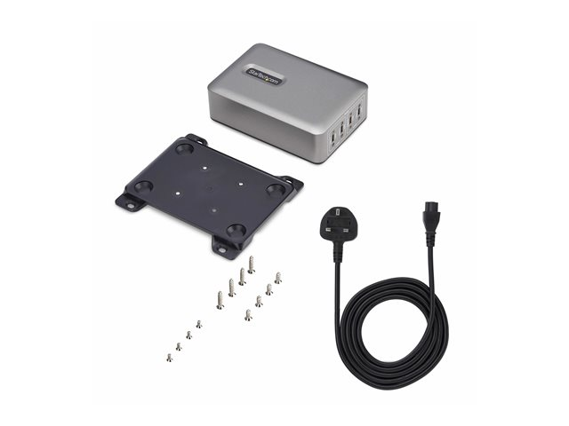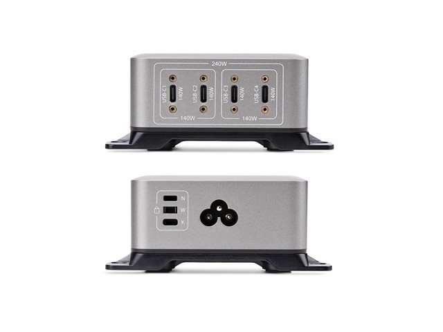 - Informasjon The StarTech.com 4-Port USB-C Charger is a versatile power adapter designed to efficiently charge various devices such as tablets, cellular phones, and notebooks. With a robust power output of 240 watts and the ability to provide multiple voltage levels ranging from 5 V to 28 V, this charger ensures you are equipped for all your charging needs. The charger complies with standards including UL, FCC, RoHS, and DoE Level VI, ensuring a reliable and safe charging experience.