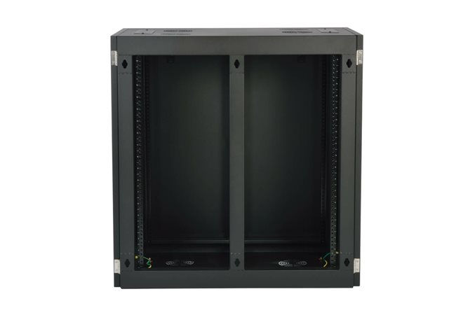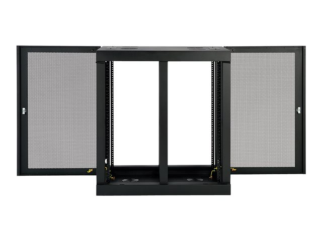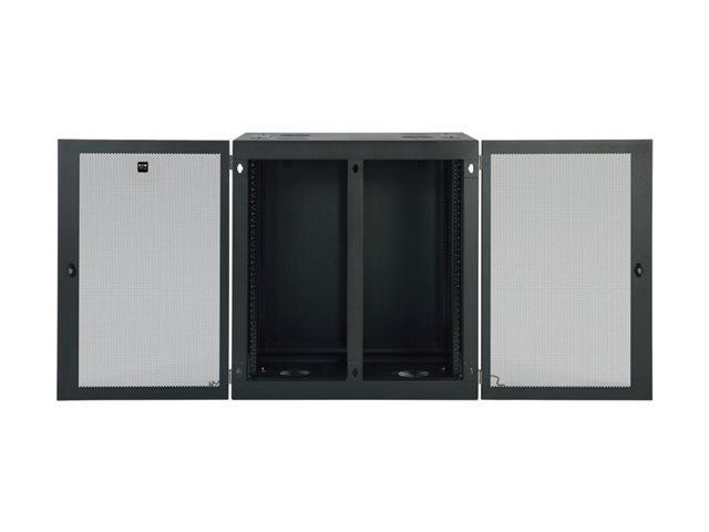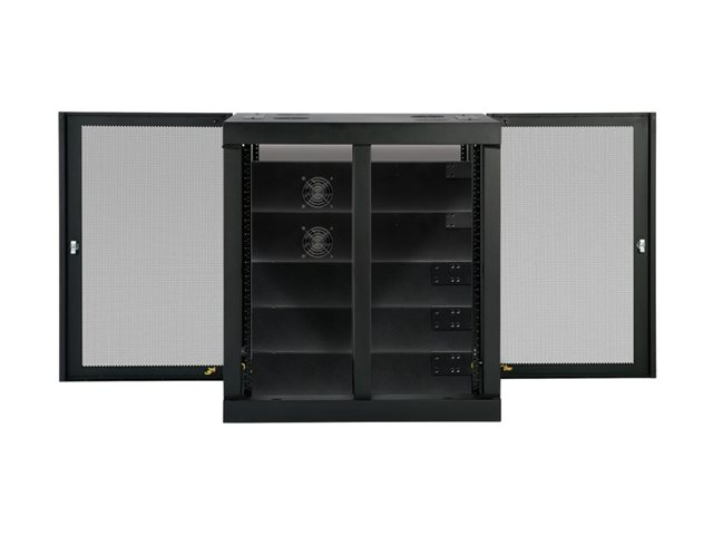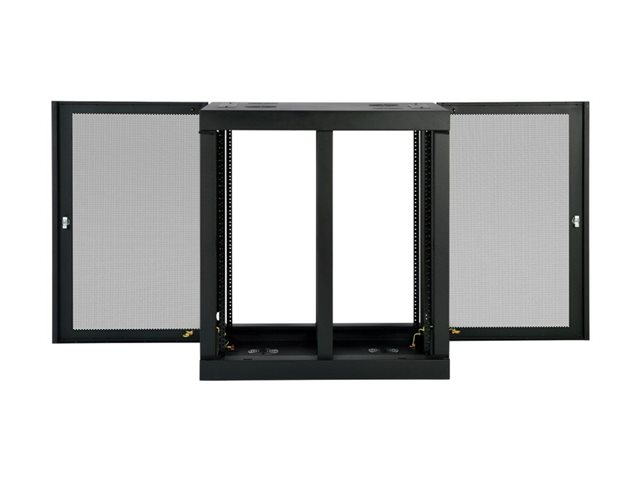 The removable front panel and side doors lock securely to help prevent damage, tampering or theft. The top, bottom and sides are vented, which allows air to flow freely and keep equipment cool. Convenient top and bottom ports allow easy cable routing.
