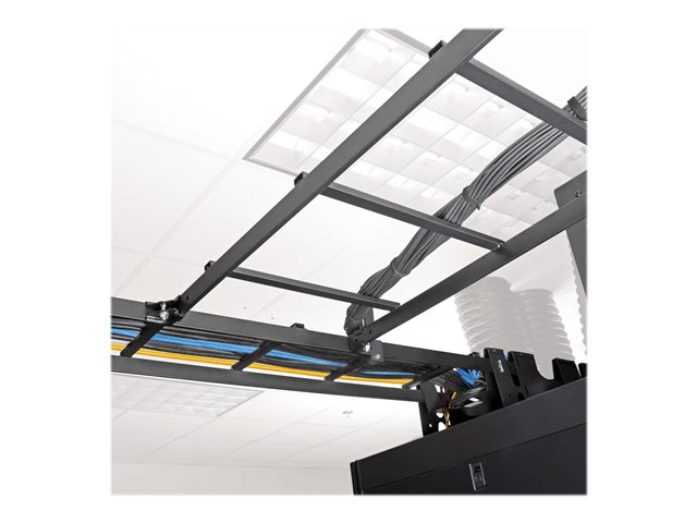 - Safely routes cables overhead