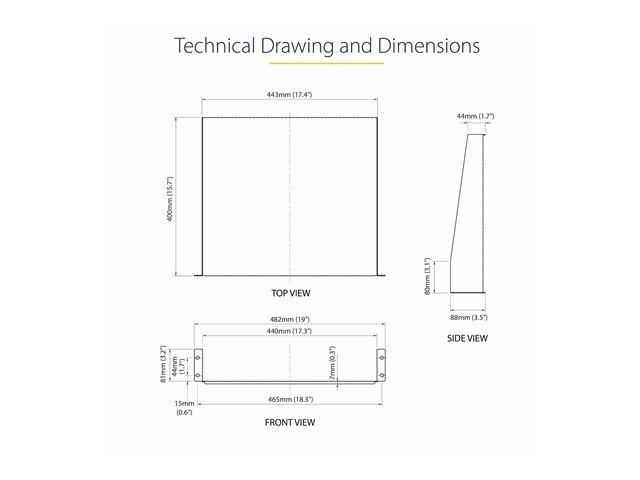 Universally mountable in any standard front mount 19" server rack or cabinet, the rack shelf is constructed of sturdy, cold-rolled steel for long-term durability.