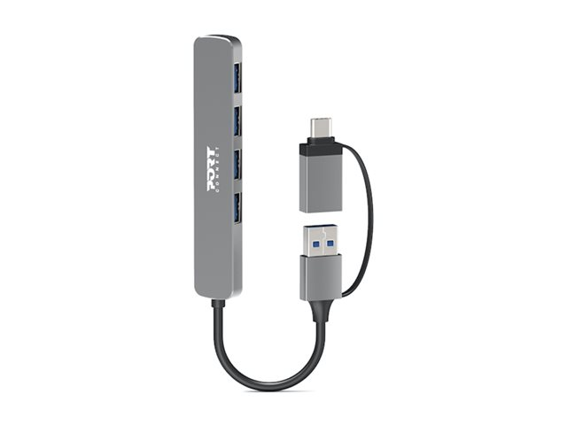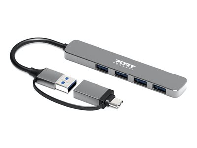 - Informasjon The PORT Connect USB-A to USB-C adapter provides a solution for connecting your devices. This desktop hub features four USB 3.0 ports, allowing for a data transfer rate of up to 5 Gbps. Whether you need to connect peripherals or charge devices, this adapter is designed to handle your needs. With its slim design and durable aluminum housing, it combines functionality with style, making it an addition to any workspace. Easy to use with Plug-and-Play compliance, it meets several standards, ensuring reliability and performance for everyday tasks.