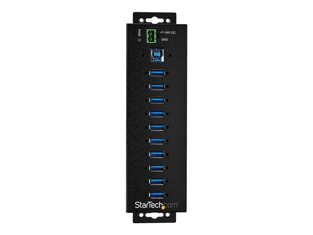 StarTech.com 10 Port USB Hub with Power Adapter, Surge Protection, Metal Industrial USB 3.0 Data Transfer Hub, Din Rail, Wall or Desk Mountable, High Speed USB 3.1/ USB 3.2 Gen 1 5Gbps Hub