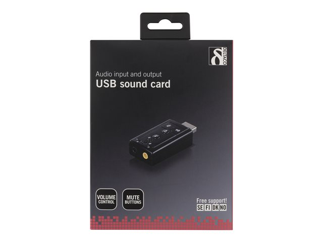 Produktbeskrivelse DELTACO UAC-03 - lydkort Enhetstype Lydkort Utførelse Ekstern Grensesnittype USB Dimensjoner (BxDxH) 2.3 cm x 4.4 cm x 1.1 cm Maskinvarekontroller og -indikatorer Lydstyrkekontroll, dempeknapp Systemkrav Apple MacOS, Linux, Microsoft Windows Vista / XP / 7 - Nedlastbare filer