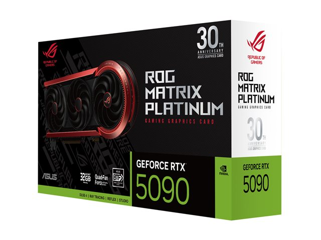 - Informasjon The ASUS ROG Matrix Platinum 30th Anniversary Edition combines power and precision, making it an option for gamers and creators alike. Equipped with the NVIDIA GeForce RTX 5090 graphics processor, this graphics card features 32 GB of GDDR7 SDRAM, delivering performance that supports a maximum external resolution of 7680 x 4320 across up to four monitors. With a memory speed of 28 Gbps and a bus width of 512-bit, it handles the most demanding applications, enabling smooth gameplay and rendering.