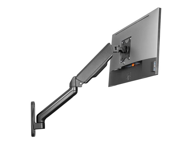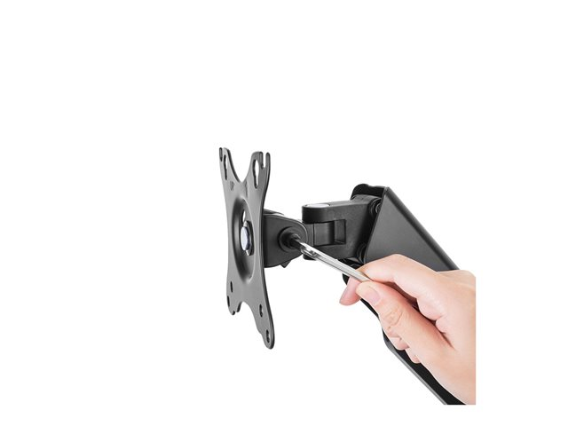 - Informasjon The Neomounts WL70-450BL11 is a full-motion wall mount for flat screens up to 32" with a maximum weight capacity of 9kg. The versatile tilt (135°), rotate (360°) and swivel (180°) technology allows you to create the optimum viewing angle. The WL70-450BL11 has a depth of 9-54 cm and is suitable for screens that meet VESA hole pattern 75x75 to 100x100 mm. The mount can be easily adjusted in height using the gas spring. The cable management system allows you to route and secure any loose cables at the back of the screen. Additionally, the mount features an easy-release VESA, that allows you to attach the TV in a wink of an eye.