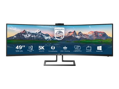 - Informasjon Phillips' prisbelønte 49" kurvede 32:9 SuperWide-skjerm er som to skjermer i full størrelse med høy ytelse i én. Produktivitetsfremmende funksjoner som USB-C og popupwebkamera med Windows Hello leverer ytelse og anvendelighet du forventer.