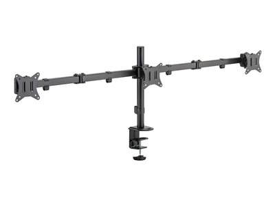 - Informasjon Provides stable support for three 13" to 27" monitors up to 7 kg per arm. Flexible design for ample adjustment and viewing angles, adjustable for either portrait or landscape orientation. Grommet and clamp mounting options included for installation on most any work surface. A detachable VESA plate for user-friendly installation. Cable clips included for an organized and clutter-free workplace.