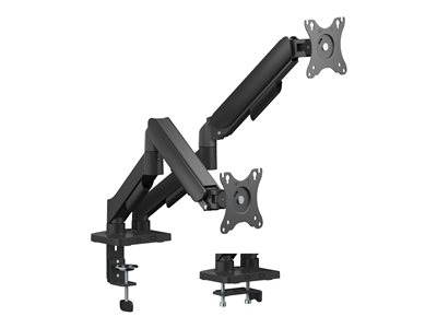 - Informasjon This mechanical spring dual monitor arms features tree-axis rotation, adjustable spring wright and bulti-in cable management. Suitable for screens from 27-32".