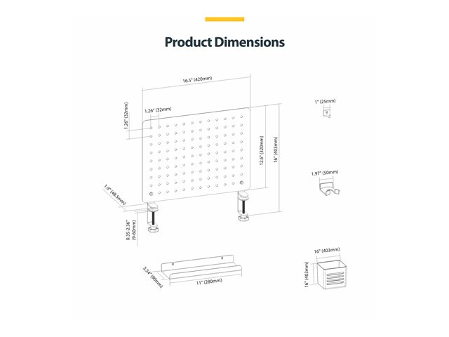 StarTech.com Clamp-On Pegboard with Accessories, 16.5 x 12.5in (42 x 32cm), Steel Pegboard, Desktop Storage Organizer, Desk Mount Peg Board, Black monteringskomponent