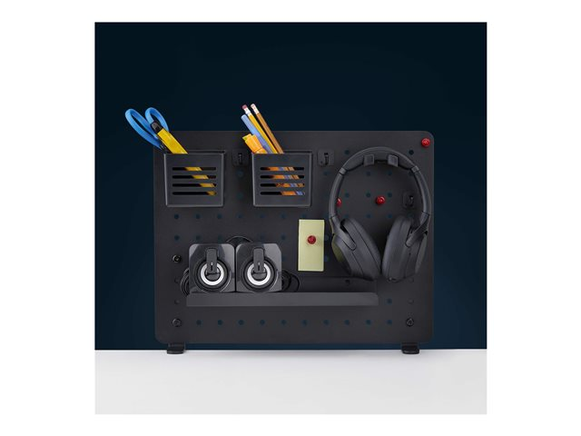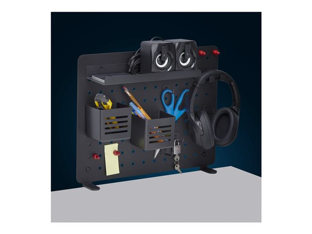 Included with the pegboard are essential accessories such as desk clamps, hooks, and containers that help keep items accessible and tidy. The headset hanger and magnets provide options for various storage needs, allowing for easy customization. With everything needed for setup right out of the box, this system contributes to a more productive workspace.