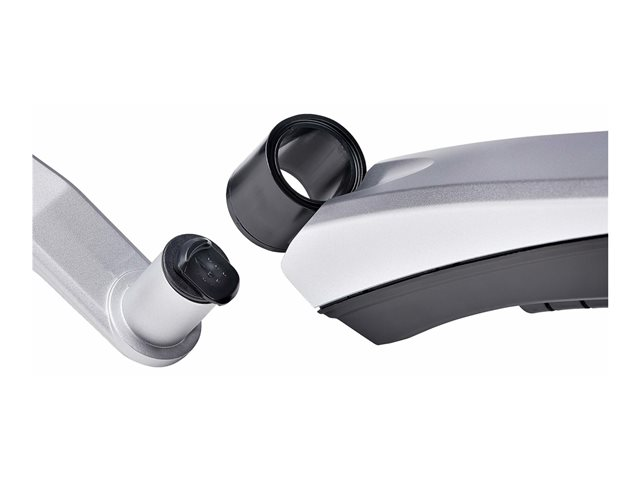 - Desk-mountable design with articulating arm offers flexible placement options to maximize desk space