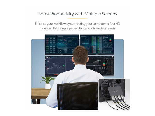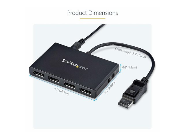 Startech 4-Port Multi Monitor Adapter, DisplayPort 1.2 MST Hub, 4x 1080p, Video Splitter for Extended Desktop Mode on Windows PCs Only, DP to Quad DP Monitors MST Hub